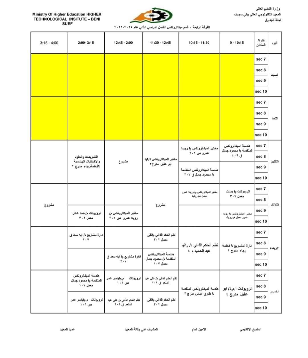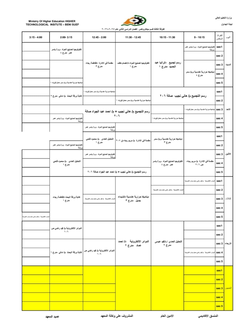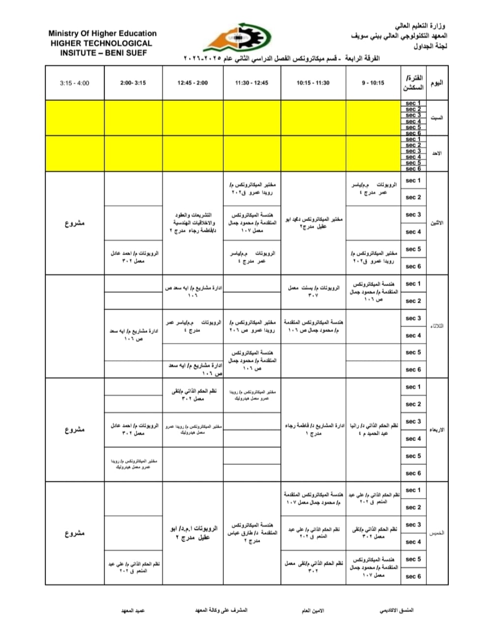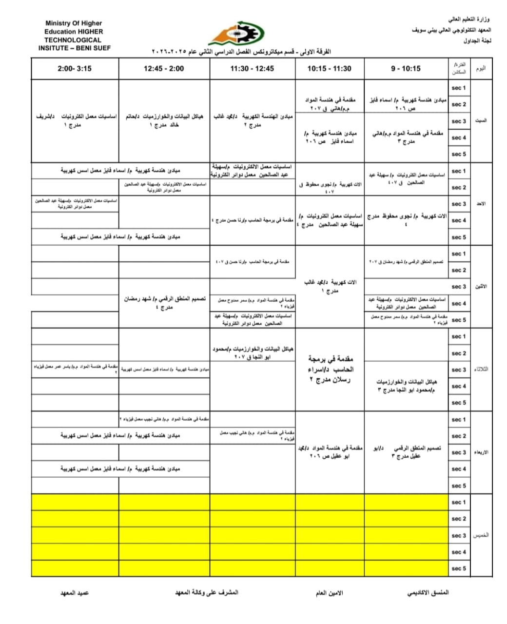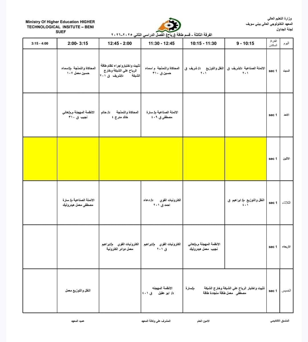 جداول الفصل الدراسي الثاني الخاص بشهر رمضان المبارك – للعام الدراسي 2025/2026 | المعهد التكنولوجي العالي ببني سويف جميع اقسام المعهد تكنولوجيا تشغيل ومراقبة وصيانة شبكات الحاسب. تكنولوجيا إعداد وصيانة وتطوير نظم وبرامج الحاسبات. تكنولوجيا الطاقة الجديدة والمتجددة (شمسية ورياح) برنامج الميكاترونكس طلاب المعهد الكرام، جدول الفصل الدراسي الثاني للعام الجامعي 2025 / 2026 متاح الآن للرجوع إليه والاطلاع على مواعيد المحاضرات والاختبارات. في إطار حرص المعهد التكنولوجي العالي ببني سويف على تنظيم العملية التعليمية وضمان استعداد الطلاب الجيد، يُرجى من جميع الطلاب الاطلاع على الجدول والالتزام بالمواعيد المحددة لكل محاضرة واختبار. نتمنى لكم فصلًا دراسيًا موفقًا ومليئًا بالنجاح والتفوق. #المعهد_التكنولوجي_العالي_بني_سويف #العام_الدراسي_2025_2026 #جدول_الفصل_الدراسي_الثاني #طلاب_المعهد #نجاح_وتفوق #التعليم_في_بني_سويف #استعداد_دراسي #تكنولوجيا_تشغيل_ومراقبة_وصيانة_شبكات_الحاسب #تكنولوجيا_إعداد_وصيانة_وتطوير_نظم_وبرامج_الحاسبات #تكنولوجيا_الطاقة_الجديدة_والمتجددة_شمسية_ورياح #برنامج_الميكاترونكس #جداول_الدراسة #جدول_الترم #جدول_المحاضرات #جدول_السكاشن